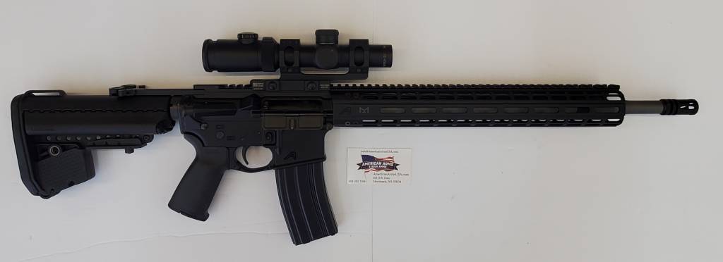 Aero Precision M4E1 build list. M4E1 upper 18″ barrel. 223Wylde 15″ Rifle length upper. Ambi C.H. Nickel Boron BCG. M4E1 lower. Daniel Defense parts kit. Geissele SSA Trigger. Vlto Emod Stock with an ADM AD-RECON 30mm SD lever Cantilever Scope mount Weaver Classic extreme 30mm scope. 1.5-4 24mm. Like New. Total build cost $2080. Consignment $1299. Nice build!