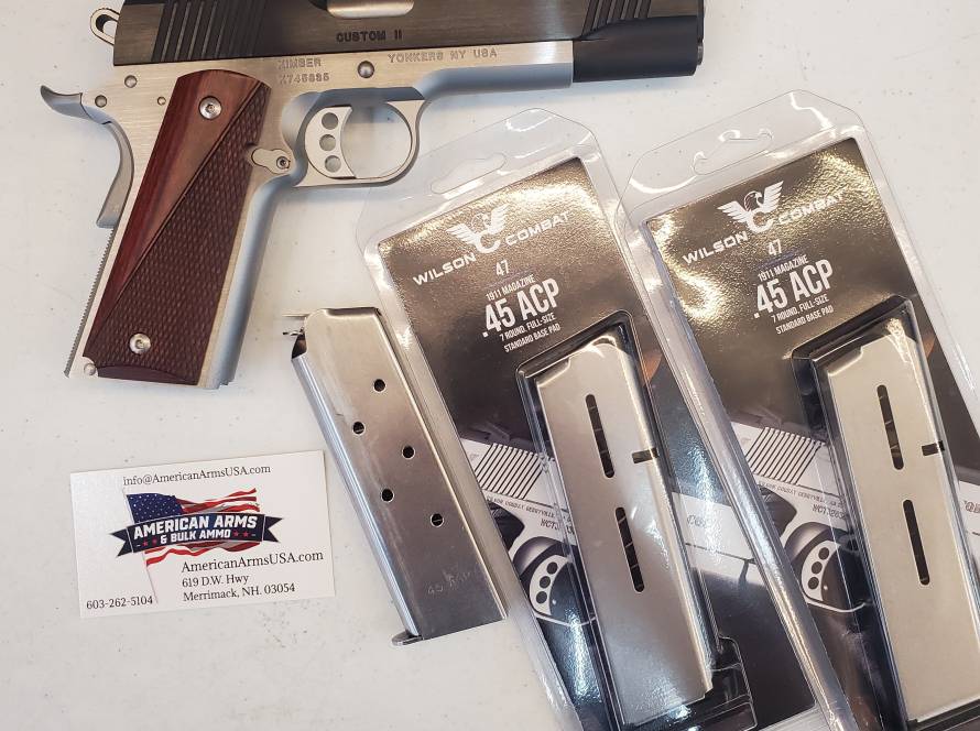 KIMBER CUSTOM II 45ACP TWO TONE. TWO NEW WILSON COMBAT MAGS. FACTORY CASE. $799