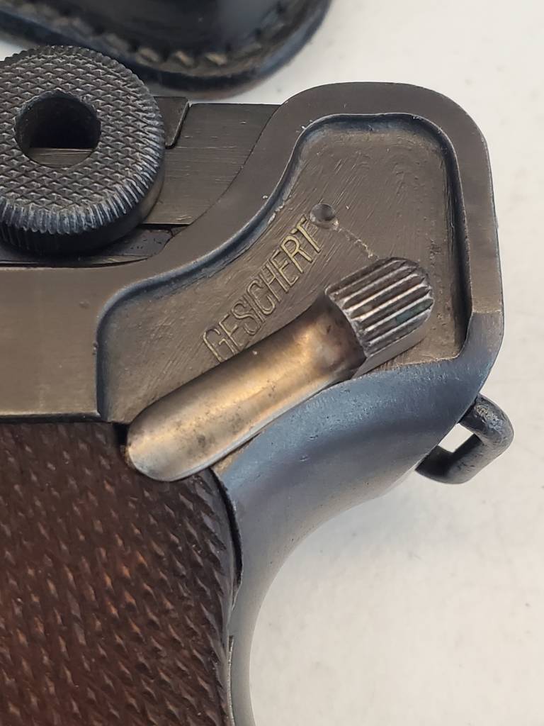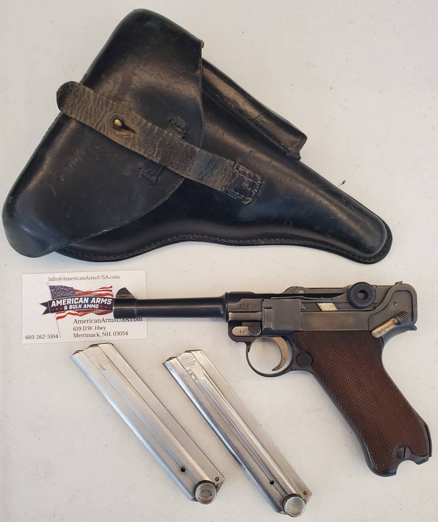 1917 DWM GERMAN LUGER. 2 MATCHING SCHMEISSER/HAENEL MAGS. PROPER HOLSTER. BERLIN POLICE 1935-1945. REWORKED DWM BARREL DATE. $3700. 3% CREDIT CARD FEE
