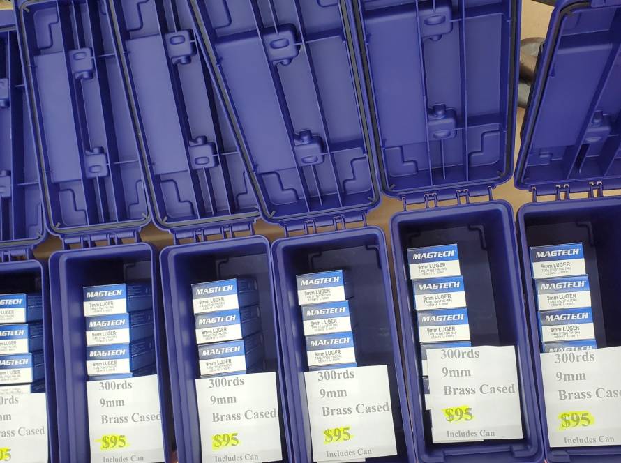 FOR NOW WE STILL HAVE 1000 ROUND CASES OF BRASS CASED 9MM AMMO AT $269. WE ALSO ARE GOING TO RAMP UP OUR OFFERINGS OF SMALLER “BULK” LOTS PRE-“LOADED” IN AMMO CANS LIKE THESE! 603-738-4652 CLOSED MONDAYS
