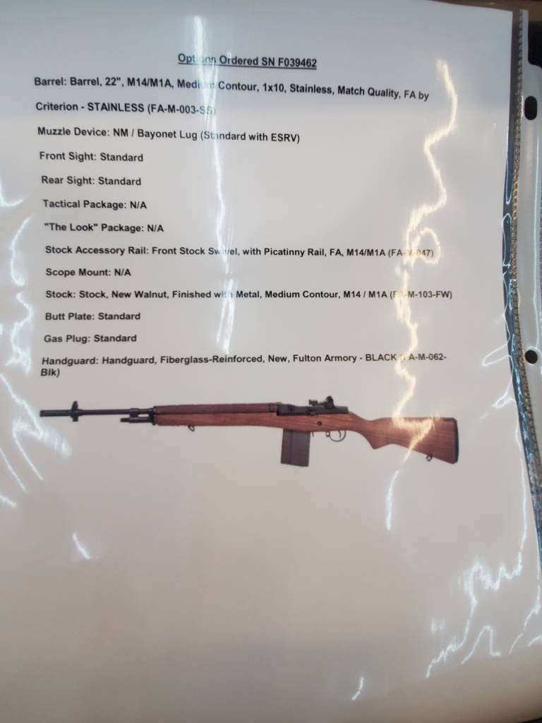 FULTON ARMORY M14 7.62mm. NEW IN BOX. SPEC SHEET ATTACHED. CONSIGNMENT $3495