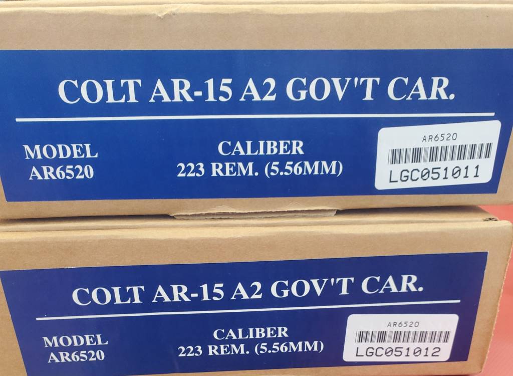 TWO NIB BOX COLT AR-15 A2 GOVT CARBINES. SEQUENTIAL S/N,s. THESE ARE NOT CONTEMPORARY MANUFACTURE. THESE ARE CLASSICS. $995 EACH OR $1900 FOR THE PAIR. **SOLD**